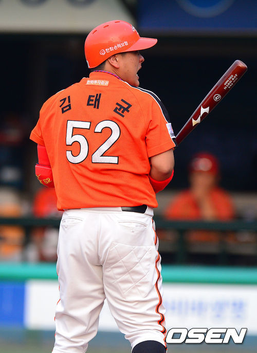 김태균은 지난달 22일 대전 KIA전에서 주루 플레이 중 발목이 꺾여 넘어지는 과정에서 옆구리를 다쳤다. 갈비뼈에 약간의 손상이 생긴 골 타박. 뼈에 금이 갈 정도로 심각한 부상은 아니지만 회복을 위해서는 꼼짝없이 안정을 취해야 하는 부위라 회복이 더디다.