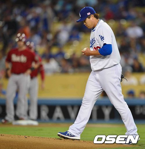류현진은 선두타자 애런 힐에게 좌중간 안타를 맞았다. 파라를 좌익수 뜬공으로 아웃시킨 류현진은 오윙스에게 중전안타를 내줘 1사 1,2루에 처했다. 고스비쉬의 타구를 잡은 2루수 호수비로 한 고비를 넘긴 류현진은 코빈을 투수 땅볼로 직접 아웃시켰다.