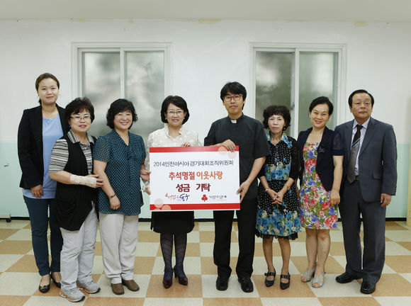 2014 인천아시아경기대회조직위원회(위원장 김영수)는 12일 추석 명절을 맞아 전 임직원이 동참한 가운데 사랑나눔 성금 모금활동을 전개, 총 1788만원을 모금해 사회복지시설에 전달했다.