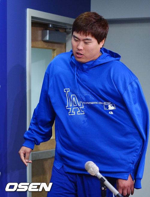 경기를 마치고 류현진이 인터뷰실로 입장하고 있다. / rumi@osen.co.kr