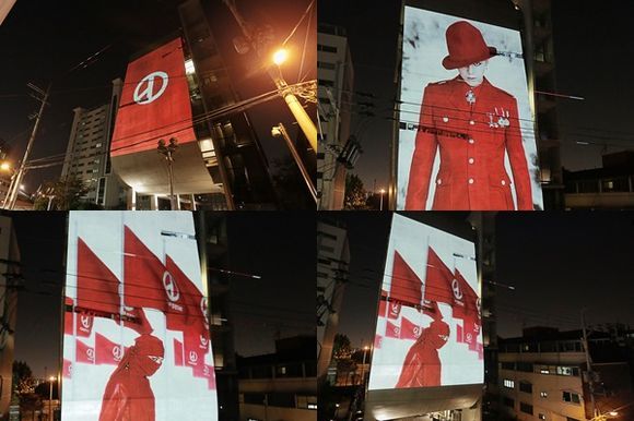 이번 미디어 파사드는 지드래곤 정규 2집 ‘쿠데타’에 활용된 레드와 블랙 이미지를 통해 대형 이미지로 강렬한 인상을 전달하고 있다.