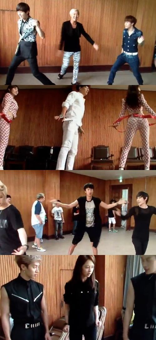 유재석은 걸스데이 민아와 유라에게 '기대해' 안무를 쑥스러운 듯 따라하고, 개리는 에이핑크 정은지와 손나은에게 '노노노(NoNoNo)'를, 하하는 인피니트 성규와 엘에게 '내꺼하자'를 자신있게 배웠다. 또 이광수는 엠블랙 이준과 양승호에게 '와이(Y)'를 배웠고, 홍일점 송지효는 비스트의 이기광과 윤두준에게 '픽션(Fiction)'의 안무를 배웠다.
