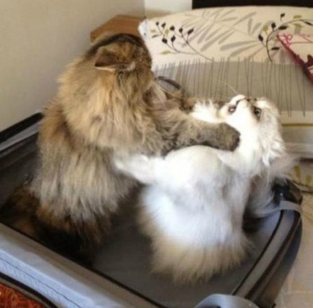 [OSEN=이슈팀] 마치 한대 주고받은 듯 멱살 잡은 고양이 사진이 공개돼 네티즌 사이에서 화제가 되고 있다.