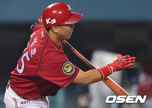 8회초 KIA 공격 2사 2루 상황 이범호가 추격의 1타점 중전안타를 날리고 있다.
