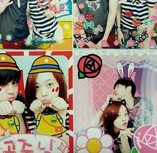 [OSEN=방송연예팀] 남성그룹 슈퍼주니어 멤버 김희철과 걸그룹 에프엑스 멤버 설리가 함께 찍은 스티커사진이 공개됐다.