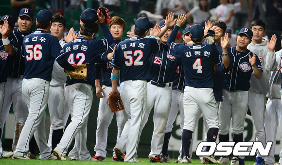 승리를 거둔 두산 선수들이 기뻐하고 있다./youngrae@osen.co.kr