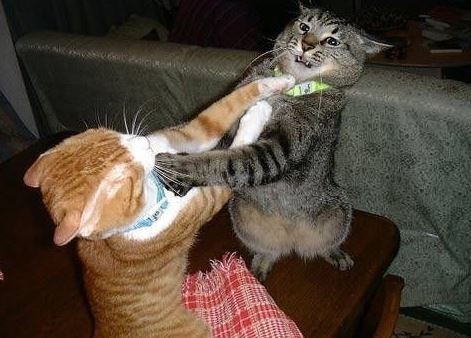 최근 다수의 온라인 커뮤니티에서 '멱살 잡은 고양이'이라는 게시물이 인기를 모으고 있다. 시리즈로 올라온 '멱살 잡은 고양이' 게시물에는 고양이들이 다투는 사진 담겨 있다.