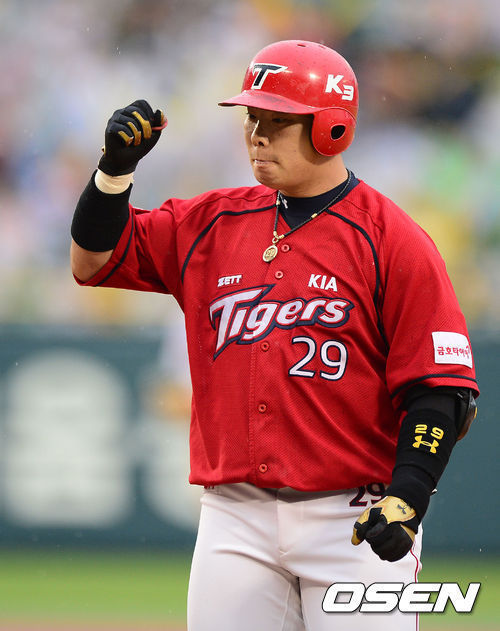 KIA 4번타자 나지완이 외로운 도전을 하고 있다.