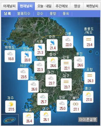 낮 최고기온은 23도에서 29도로 어제와 비슷할 것으로 기상창은 내다봤다. 남부지방은 어제와 비슷하거나 조금 높을 것으로 보인다.