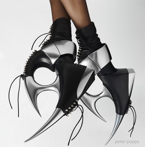 공개된 사진에는 일반 구두의 2~3배가 넘는 굽 높이를 자랑하는 하이힐의 모습이 담겨 있다. 문제는 단순히 굽이 높기만 한 것이 아니라 공포영화에 나올 법한 기괴한 디자인이다. 미국의 한 구두 디자이너가 디자인한 이 하이힐은 '큐브'라는 이름으로, 가재의 집게발처럼 뾰족하고 복잡한 굽과 징이 박혀있어 그로테스크한 느낌을 준다.