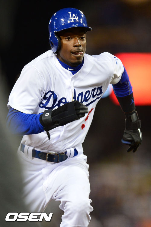 13일 (이하 한국시간) 미국 캘리포니아주 로스앤젤레스 다저스타디움에서 열린 2013 메이저리그 LA 다저스와 샌프란시스코 자이언츠의 경기, 7회말 무사 주자 2루 마크 엘리스의 희생 번트때 2루 주자 고든이 3루로 달리고 있다.