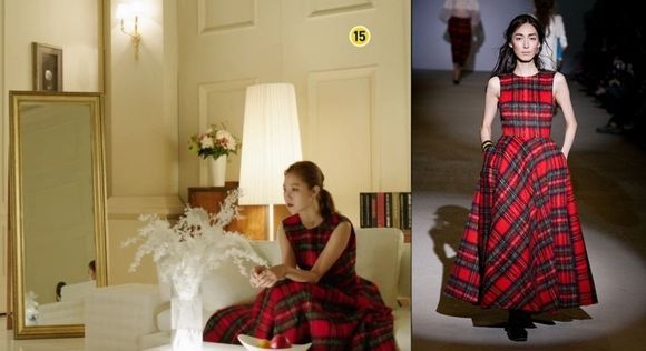 주군의 태양 태공실 역의 공효진이 착용한 강렬한 레드컬러의 타탄체크원피스는 2013 F/W '푸시버튼' 제품으로, 자칫 혼란스러워 보일 수 있는 복잡한 타탄 체크 패턴에 레드 컬러가 포인트가 돼 태공실의 경쾌한 캐릭터를 더욱 부각시키고 있다.