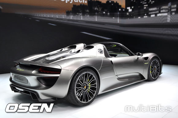 플러그인 하이브리드 슈퍼카인 '918 스파이더(Spyder)'는 RS스파이더에 장착된 8기통 4.6ℓ 가솔린 엔진과 2개의 모터를 조합한 PHV 시스템을 전륜과 후륜에 각각 탑재했다. 전륜 모터는 최고 130마력, 후륜 모터는 최고 156마력을 낸다.