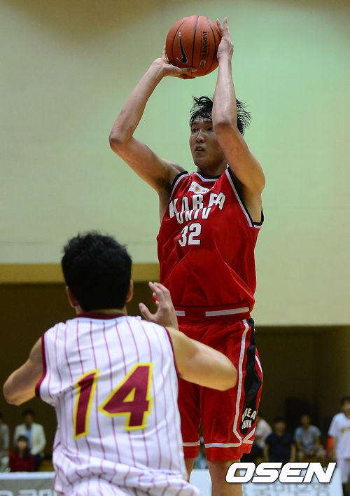 13일 오후 경기도 수원대학교 체육관에서 열린 2013KB국민은행 대학농구리그 경희대와 고려대의 2차전, 4쿼터 고려대 이종현이 점프슛을 시도하고 있다.