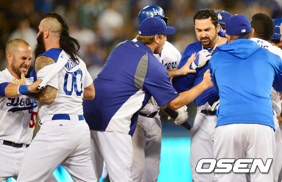 LA 다저스는 13일(이하 한국시간) 미 캘리포니아주 로스앤젤레스 다저스타디움에서 열린 ‘2013 메이저리그’ 샌프란시스코 자이언츠와의 경기에서 2-2로 맞선 10회 터진 곤살레스의 끝내기 안타에 힘입어 3-2로 이겼다. 전날 애리조나전 패배의 아쉬움을 달랜 다저스는 86승60패를 기록하며 이날 경기가 없었던 지구 2위 애리조나와의 승차를 12.5경기로 벌렸다. 지구 우승을 향한 매직넘버는 ‘5’가 됐다.