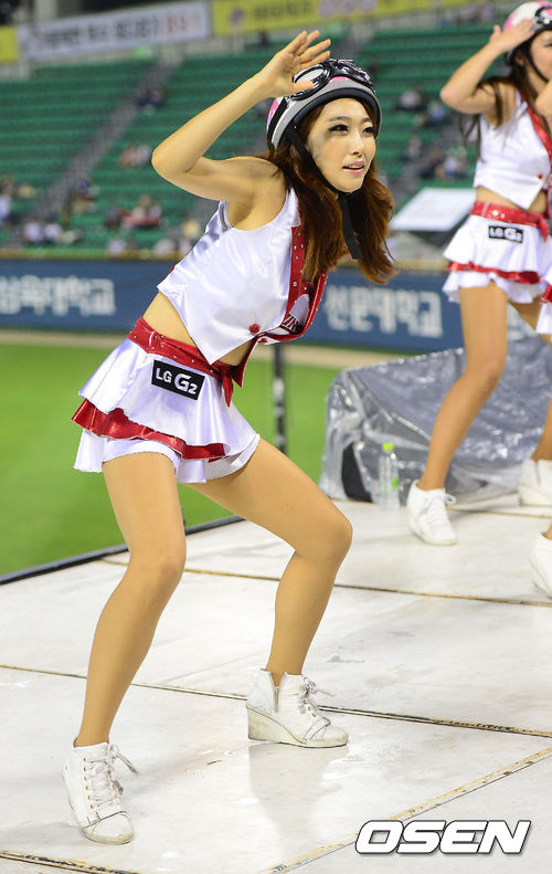 13일 오후 서울 잠실야구장에서 열린 '2013 한국야쿠르트 세븐 프로야구' LG 트윈스와 KIA 타이거즈의 경기, LG 치어리더가 공연을 선보이고 있다.