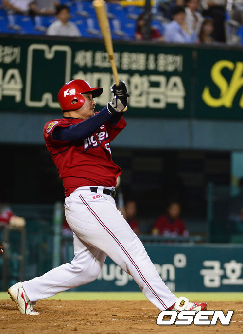 13일 오후 서울 잠실야구장에서 열린 '2013 한국야쿠르트 세븐 프로야구' LG 트윈스와 KIA 타이거즈의 경기, 4회초 1사 1,2루 KIA 이종환이 1타점 적시타를 때리고 있다.