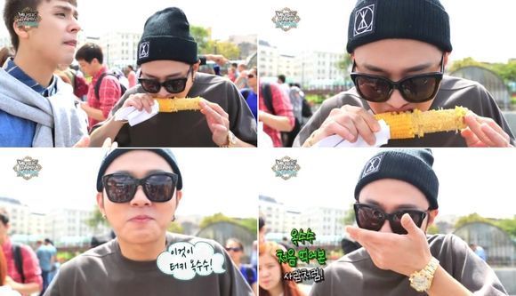 보이그룹 비스트의 용준형이 옥수수 먹방을 하다 온 얼굴에 묻혀 막내 멤버 손동운의 놀림을 들었다. 해외에서 맛있게 먹는 모습이 인상적이다.