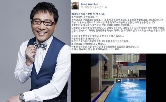이봉원은 14일 오전 자신의 페이스북에 "본의 아니게 안타깝게도 '스플래시'가 폐지됐고 여러모로 섭섭하고 착잡하네요"라는 글과 함께 자신의 다이빙 연습 동영상을 게재했다.
