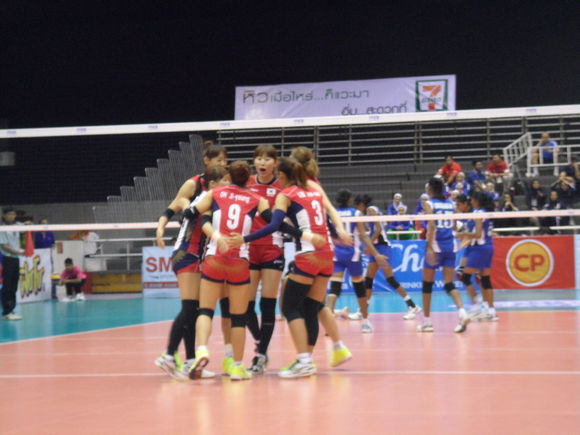 11-5에서 한송이의 2연속 가로막기로 13-5로 앞서가던 한국은 15-7에서 연속 9득점에 성공, 1세트를 25-8로 간단하게 끝냈다. 한국의 강력한 서브 앞에 리시브가 흔들린 스리랑카는 힘 한번 제대로 써보지 못하고 1세트를 내줬다.