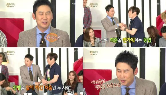 신동엽은 14일 방송된 KBS 2TV '불후의 명곡, 전설을 노래하다'에서 대기실 진행을 맡았으나, 실수를 연발해 웃음을 자아냈다. 그는 뒤늦게 파트너 문희준이 등장하자 "왜 이제야 왔냐"며 두 손을 마주 잡으며 "이제부터 진행을 해달라"고 말하며 한숨을 쉬었다.