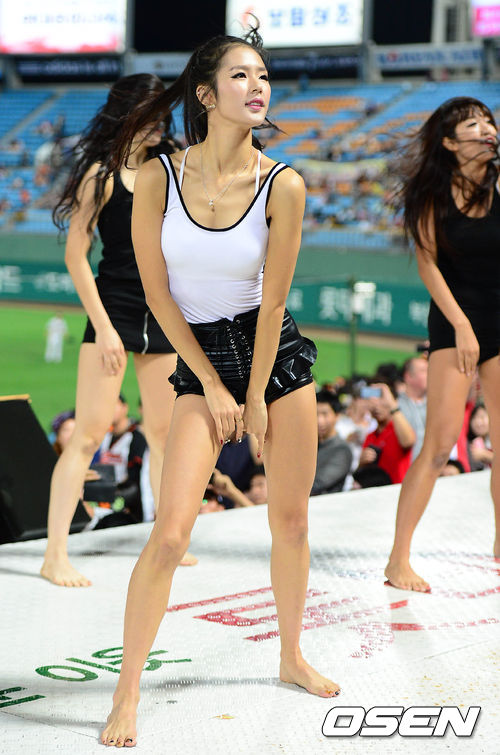 14일 오후 부산 사직야구장에서 열린 롯데 자이언츠와 두산 베어스의 경기, 롯데 치어리더 박기량이 화려한 공연을 펼치고 있다.