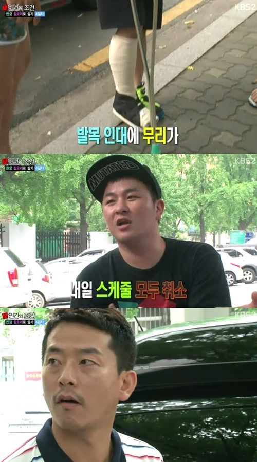 허각은 다리에 깁스를 하고 나타나 멤버들을 놀라게 했다. 허각은 "발목 인대에 무리가 왔다. 내일 행사 6개를 취소했다"라고 말했다.