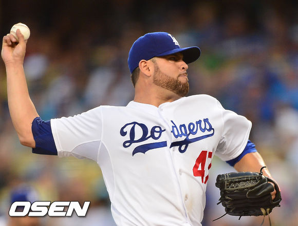 15일 (이하 한국시간) 미국 캘리포니아주 로스앤젤레스 다저스타디움에서 열린 2013 메이저리그 LA 다저스와 샌프란시스코 자이언츠의 경기,다저스 선발 리키 놀라스코가 힘차게 공을 뿌리고 있다.
