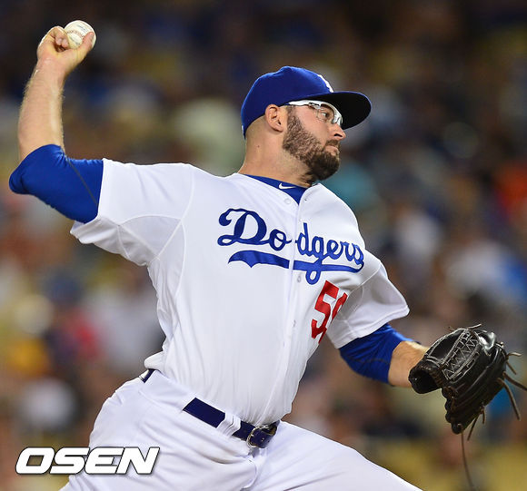 15일 (이하 한국시간) 미국 캘리포니아주 로스앤젤레스 다저스타디움에서 열린 2013 메이저리그 LA 다저스와 샌프란시스코 자이언츠의 경기, 3회초 마운드에 오른 다저스의 파이프가 힘차게 공을 뿌리고 있다.