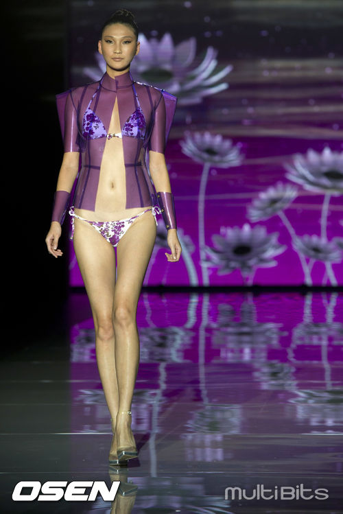 매혹적인 란제리를 입은 모델들이 화려한 무대를 장식하고 있다.