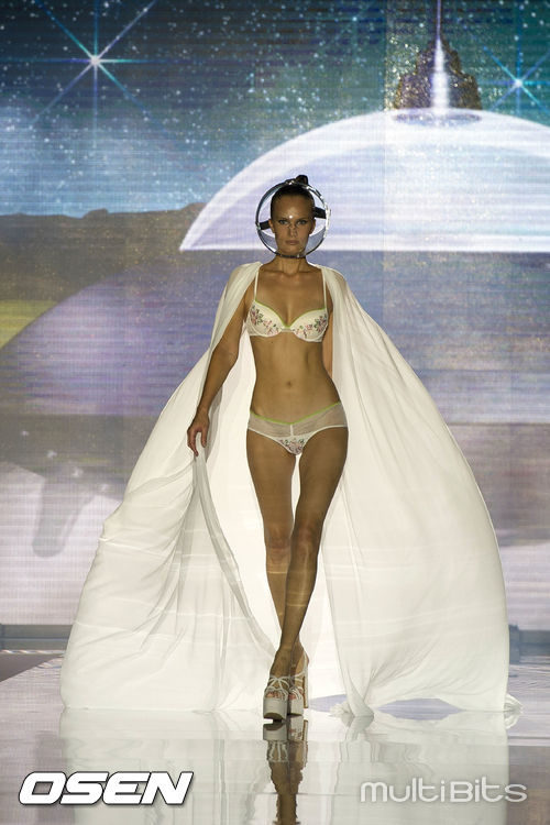 매혹적인 란제리를 입은 모델들이 화려한 무대를 장식하고 있다.