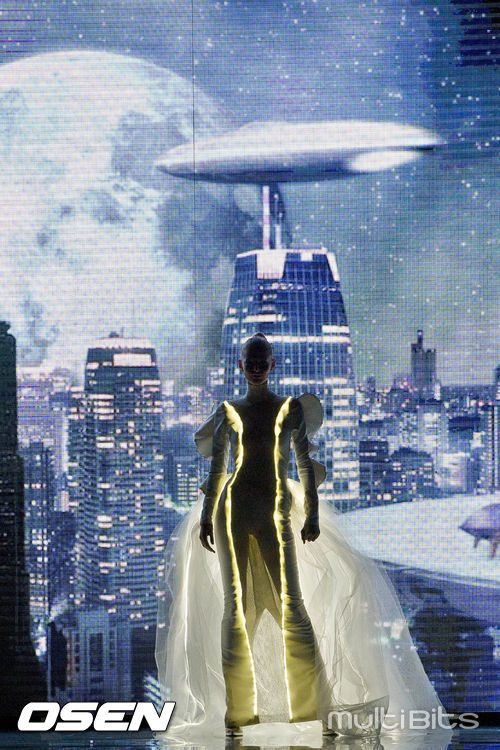 매혹적인 란제리를 입은 모델들이 화려한 무대를 장식하고 있다.