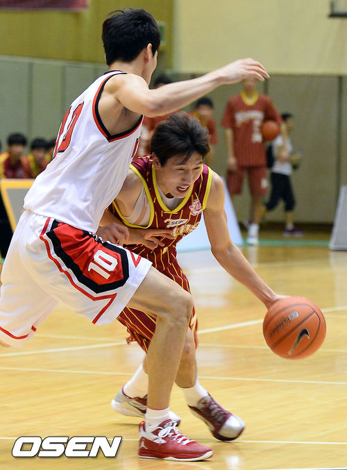 15일 오후 경기도 수원대학교 체육관에서 열린 2013KB국민은행 대학농구리그 경희대와 고려대의 챔피언결정전 3차전, 1쿼터 경희대 두경민이 고려대 문성곤을 돌파하고 있다.