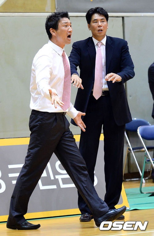 15일 오후 경기도 수원대학교 체육관에서 열린 2013KB국민은행 대학농구리그 경희대와 고려대의 챔피언결정전 3차전, 3쿼터 고려대 이민형 감독이 심판의 판정에 항의하고 있다.