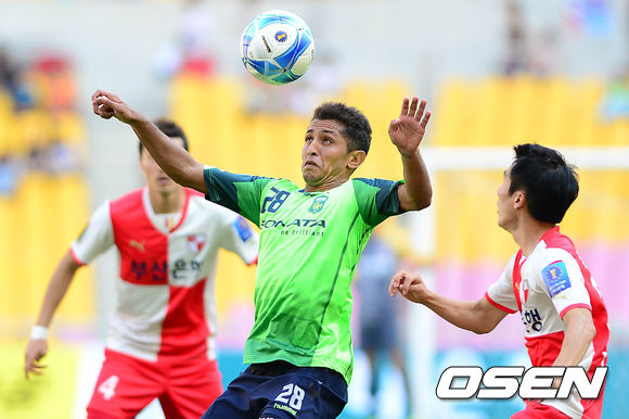 15일 오후 부산 아시아드주경기장에서 열린 하나은행 FA컵 준결승전 부산 아이파크와 전북 현대의 경기, 후반 전북 티아고가 볼트래핑을 하고 있다.