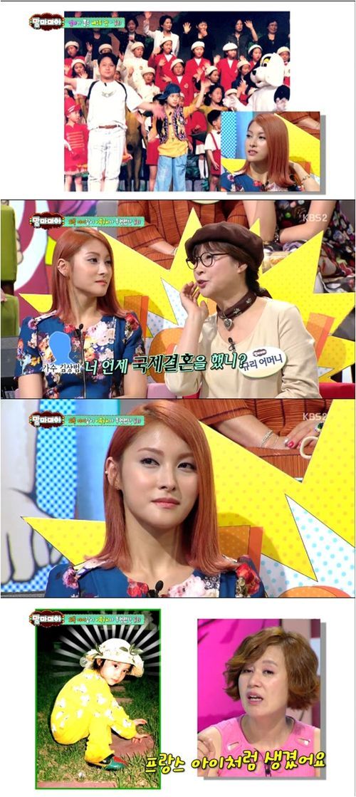 박규리의 엄마는 “규리를 보고 어떤 가수가 나에게 국제 결혼한 것 아니냐고 했다”면서 “외국인처럼 생겼었다”고 털어놨다. MC 박미선 역시 “프랑스 아이 같다”고 말했다.