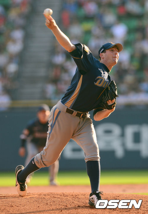 15일 오후 서울 잠실구장에서 열린 '2013 한국야쿠르트 세븐 프로야구' LG 트윈스와 NC 다이노스의 경기 NC 선발 찰리가 역투하고 있다.
