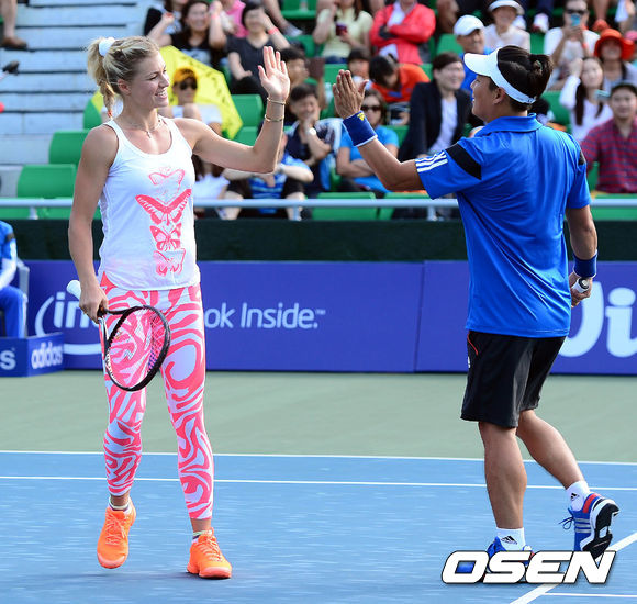 또한, 레슨 이후 키릴렌코와 이재훈(쿨)씨가 한 팀을 맺어 윤종신, 전미라 부부를 상대로 뜨거운 라켓 대결을 펼치는 행사도 열려 팬들에게 볼거리를 제공했다. / baik@osen.co.kr