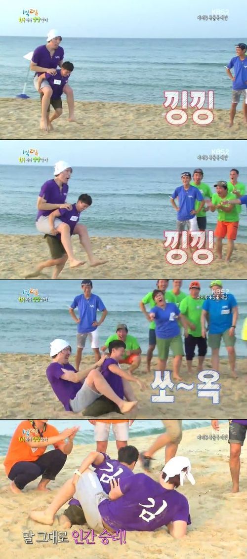 이에 허경환이 최홍만 업기에 도전, 결국 성공했다. 허경환은 몸을 부들부들 떨었고 최홍만은 거의 끌려오다 싶이 해 큰 웃음을 선사했다. 두 사람은 결국 패배하고 말았다.