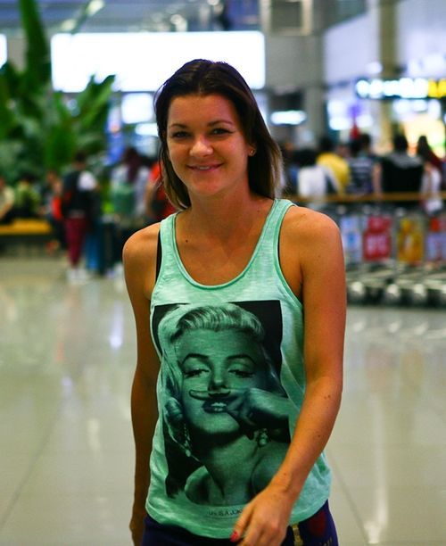 올해 미국 스포츠전문채널 ESPN의 누드 화보 촬영에 임해 화제를 모으기도 했던 라드반스카는 의외로 초록색 민소매에 트레이닝바지를 입은 수수한 모습으로 입국장에 나타났다. 패션모델을 능가하는 외모와 바디라인으로 많은 사람들의 눈길을 끌었다.