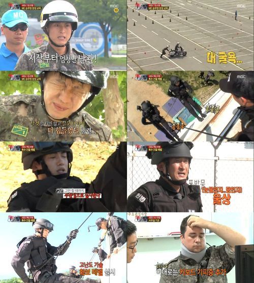 15일 오후 방송된 MBC 예능프로그램 '일밤-진짜사나이'에서는 수방사 헌병대의 주특기 교육을 받으며 400kg 가까이되는 모터사이클(MC), 22kg 가까이 되는 복장에 11m 높이의 건물과 사투를 벌이는 '진짜 사나이' 멤버들의 모습이 그려졌다.