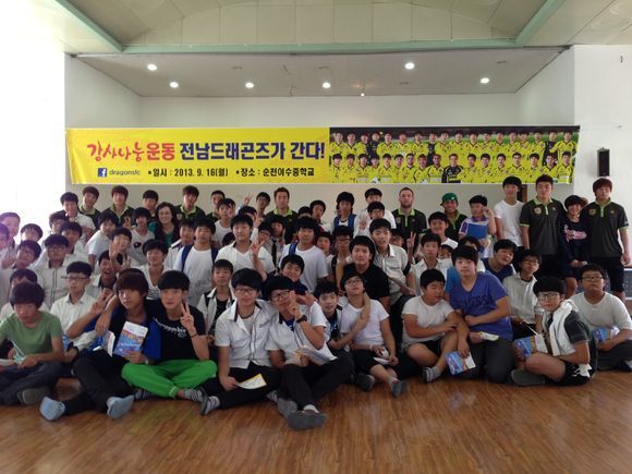 한 학생은 “우리 청소년들에게 우상인 선수들이 직접 학교를 찾아줘서 정말 기쁘고 좋은 추억을 만들어줘서 감사하다”, “선수들 힘내세요. 드래곤즈 파이팅”을 외치며 감사한 마음을 전했다.