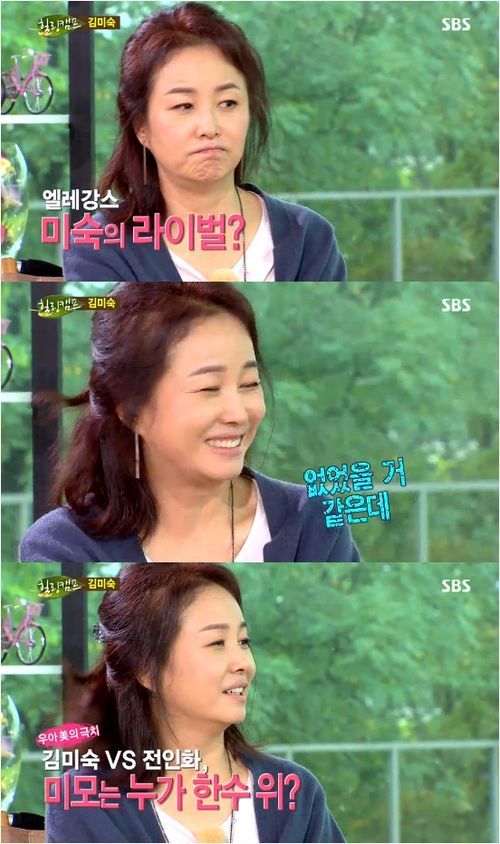 김미숙은 16일 방송된 SBS 토크쇼 ‘힐링캠프, 기쁘지 아니한가’에서 과거 전성기 시절 라이벌을 묻는 질문에 “없었다”고 단번에 답했다.