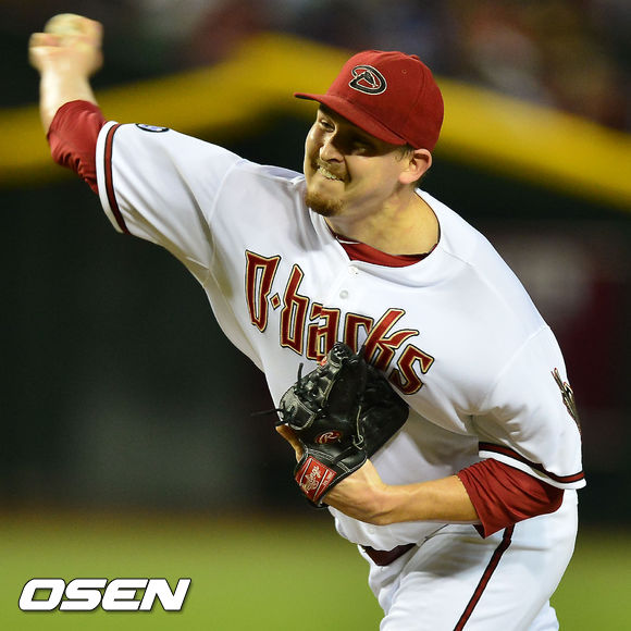 17일 (이하 한국시간) 미국 애리조나 피닉스 체이스필드에서 열린 2013 메이저리그 애리조나 다아아몬드백스와 LA 다저스 경기, 애리조나 선발 트레버 케이힐이 힘차게 공을 뿌리고 있다.