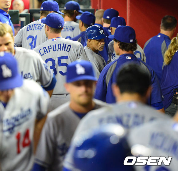 경기를 마치고 다저스 선수들이 덕아웃에서 빠르게 퇴장하고 있다. / rumi@osen.co.kr