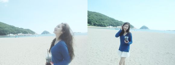 사진 속 박민영은 해변을 거닐고 있다. 파란 상의에 하얀 스커트를 매치하고 긴 머리를 흩날리며 여신같은 아우라를 풍긴다. 손에는 커피를 들고 하늘을 올려다보거나 카메라를 응시하며 사랑스러운 미소를 짓고 있다.