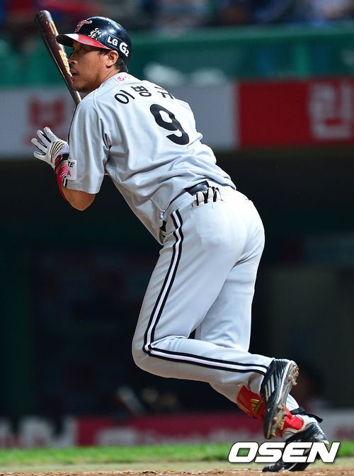 7회초 LG 공격 1사 만루 상황 5번타자 이병규가 1타점 역전 좌전안타를 날리고 있다.