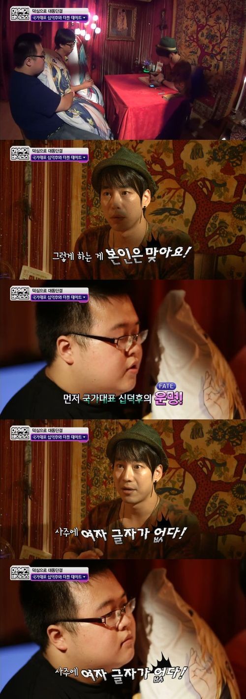 이날 식사를 마친 십덕후 이진규는 베개남과 함께 연애운을 보기 위해 점술가를 찾았다. 이에 점술가는 “(이진규가) 인형을 마치 자기 여자친구로 여기고 왔는데 그렇게 하는 게 본인에게 잘 맞다”고 설명했다.