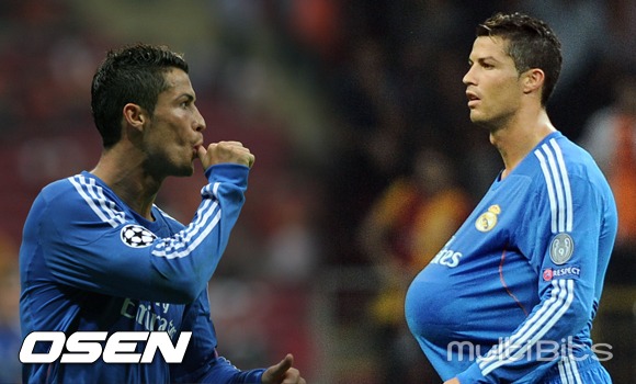 [OSEN=이슈팀] 크리스티아누 호날두(28, 레알 마드리드)의 '임신 세리머니'가 화제다. 덩달아 여자친구 이리나 샤크의 임신설로까지 확대되고 있다.