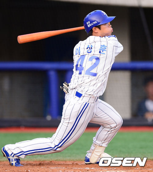 18일 오후 포항구장에서 열린 '2013 한국야쿠르트 세븐 프로야구' 삼성 라이온즈와 NC 다이노스의 경기, 2회말 1사 삼성 이상훈이 선취 솔로홈런을 날리고 있다.